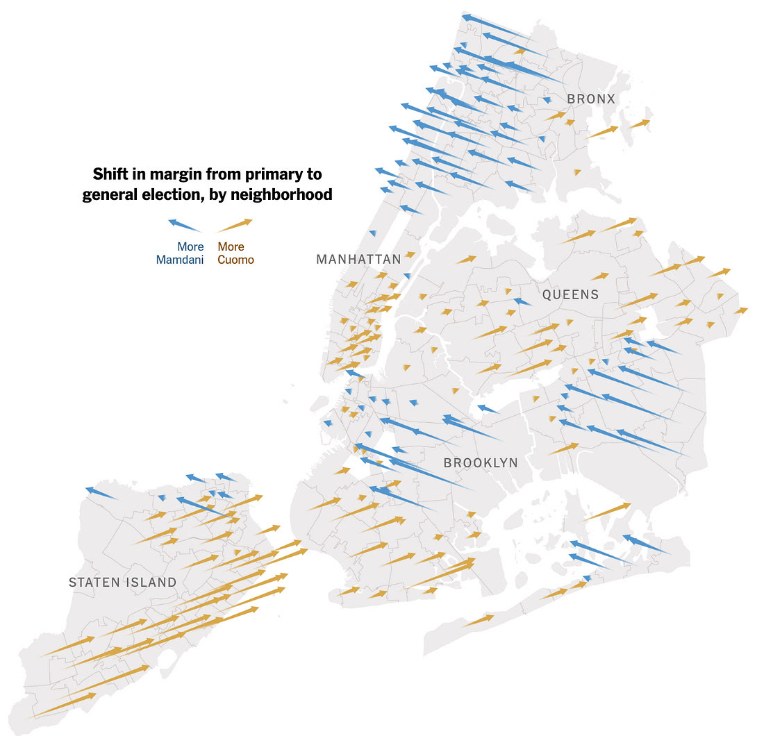 Williams ends his piece on an optimistic note. This time might be different, he writes, because whereas de Blasio and Dinkins were “reactive” figures, Mamdani “has created a genuinely new political force in the city.” Michael Lange sketched out what this force looks like electorally in his piece yesterday (ironically, or perhaps ominously headlined “The Rainbow Coalition,” a direct Dinkins callback): “The core tenants of Mamdani’s coalition are the city’s most ascendant demographics: young voters, the college-educated renter class, South Asians, and Muslims,” while Cuomo’s coalition represents “the last gasp of the Rudy Giuliani and Michael Bloomberg coalition, arrangements that once reigned municipal politics.”