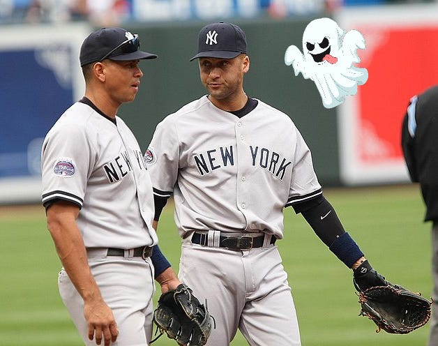 This Specter is the metaphysical manifestation of the team’s unresolved feelings towards Derek Jeter, the outrageous success his teams enjoyed in the beginning of his career, and their subsequent failure to maintain that level of success. Lurking beneath its billowy ectoplasm, the Specter contains the Yankee fanbase’s deepest and most foolhardy belief, one that all fan bases have to some extent, but which is cultivated and nurtured to absurd proportions in the Bronx, which is that their team is special. For two decades, The Captain was supposed to be a talismanic figure of Yankee exceptionalism, the next in a long, hallowed line of talismanic Yankees, like Ruth, Gehrig, DiMaggio, and Mantle, whose greatness had spawned the franchise’s dynastic, unparalleled success. The Yankees had won four championships in five years (for the fourth time in franchise history, ludicrously) between 1996 and 2000, and it must have been because of the greatness of their young, homegrown, hustling, (sort of) humble, clutch shortstop. The Yankees were special because Jeter was special, because he played the game the right way, the Yankee Way.