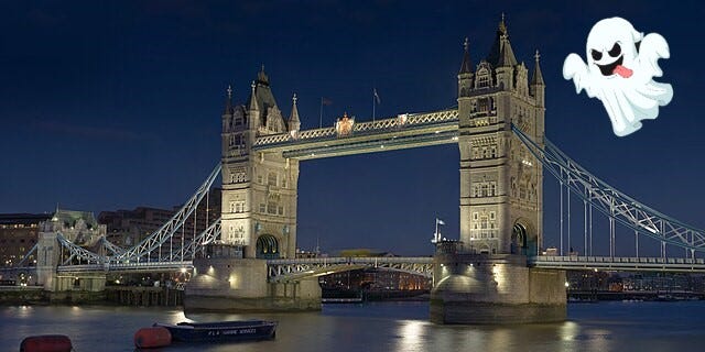 As it happens, quite a lot. A friend of a friend “just ghosted” the subject of “The Smallest Man Who Ever Lived.” Florence Welch tells us that she “barricaded in the bathroom with a bottle of wine/ well me and my ghosts, we had a hell of a time” on “Florida.” “My beloved ghost, sitting in a tree, D-Y-I-N-G,” Taylor sings on “How Did It End?” a delightfully morbid metaphor that combines nursery rhymes with Faulkner-esque temporality tricks. The narrator of “Who’s Afraid of Little Old Me,”1 leaves from the gallows and levitates down your street, pretty wraith-like behavior if you ask me. We even get a reference (seemingly out of the blue, not really related to the rest of the line or song) to the Holy Ghost on “LOML,” which is exciting if only because all three entities in the Holy Trinity have now been mentioned in Taylor Swift songs! But today, I want to focus on the ghostliest ghost song of them all: “So Long, London.” Track five. The big kahuna.